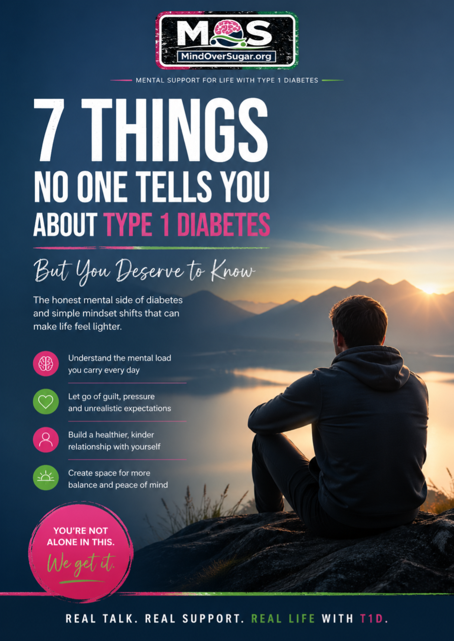 I help people with T1D calm the mental chaos, reduce burnout, and feel more in control again — without guilt, pressure, or perfection.