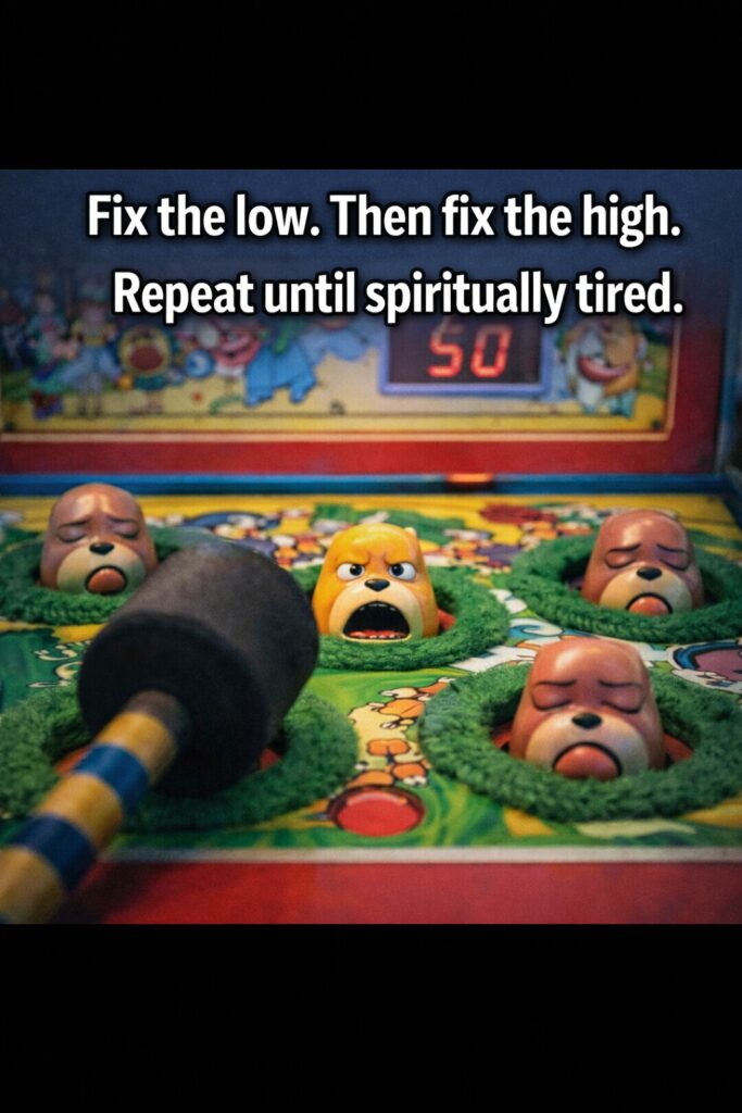 This meme frames management as a frantic game. Therefore, it feels accurate without feeling cruel.